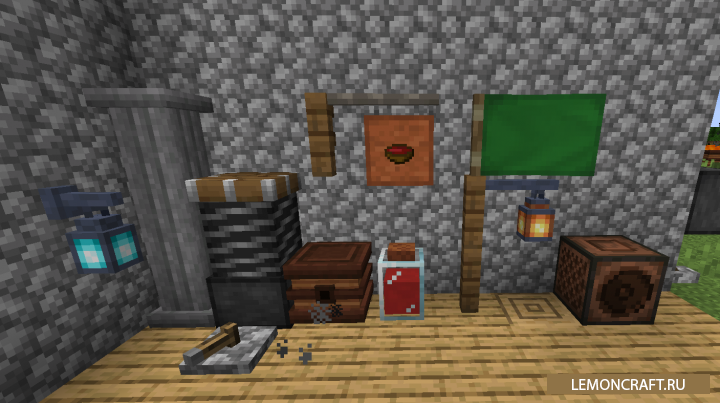 Мод на анимированные декорации Supplementaries добавляет в игру большое количество анимированных декоративных блоков имеющих индивидуальный функционал и отлично вписывающихся в ванильную составляющую игры.